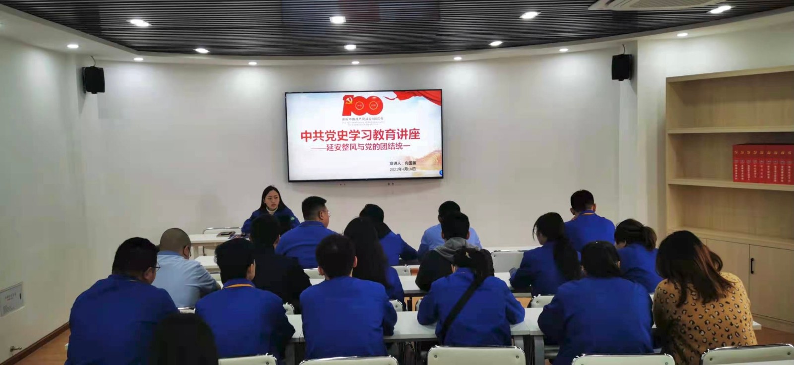 為了深入學(xué)習(xí)貫徹習(xí)近平總書記在黨史教育學(xué)習(xí)動(dòng)員大會(huì)上的重要講話精神,落實(shí)習(xí)近平總書記關(guān)于黨史、新中國史、改革開放史、社會(huì)主義發(fā)展史,喜迎建黨百年專題教育,重溫延安整風(fēng)歷史,弘楊延安整風(fēng)精神,4月16日,川投水務(wù)射洪水司團(tuán)支部開展《延安整風(fēng)與黨的團(tuán)結(jié)統(tǒng)一》專題講座。本次講座由團(tuán)支部書記向國麗擔(dān)任主講人。公司全體團(tuán)員到場參與講座。