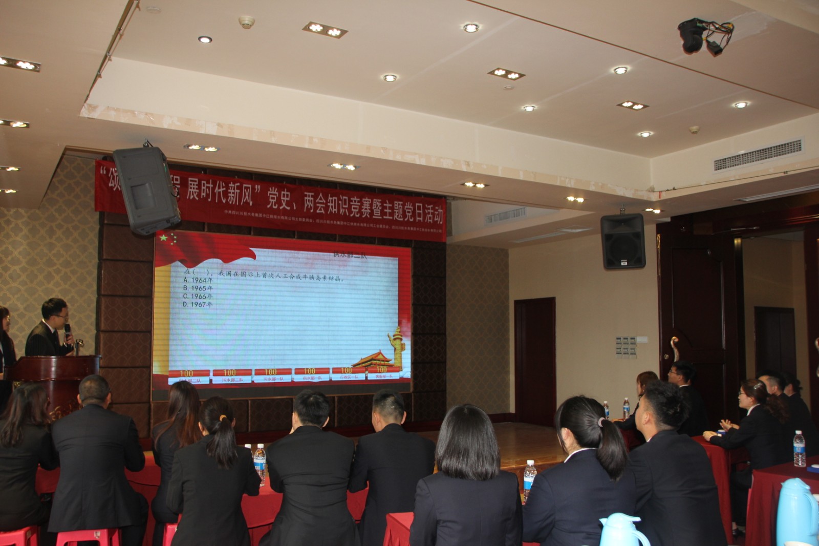 隨后,為慶祝建黨100周年,重溫中國(guó)共產(chǎn)黨光輝歷程,進(jìn)一步激發(fā)公司黨員干部職工的愛黨、愛國(guó)、愛崗熱情,堅(jiān)定共產(chǎn)主義理想信念,提升全體黨員干部職工的思想政治覺(jué)悟和黨性修養(yǎng),不斷增強(qiáng)工作、學(xué)習(xí)的責(zé)任感和使命感,營(yíng)造推動(dòng)公司又好又快發(fā)展的良好氛圍,促進(jìn)黨史學(xué)習(xí)教育的深入開展,“頌光輝歷程 展時(shí)代新風(fēng)”黨史、兩會(huì)知識(shí)競(jìng)賽活動(dòng)在黨支部書記朱禹同志的致辭后拉開了帷幕,本次競(jìng)賽活動(dòng)每隊(duì)3人,共分為供水部一隊(duì)、供水部二隊(duì)、污水部一隊(duì)、污水部二隊(duì)、行政區(qū)隊(duì)、客服部隊(duì)6個(gè)隊(duì)伍,題型有必答題、搶答題、限時(shí)題及風(fēng)險(xiǎn)題,在比賽末還穿插了觀眾互動(dòng)環(huán)節(jié)。在競(jìng)賽現(xiàn)場(chǎng),各隊(duì)選手面對(duì)主持人的提問(wèn)積極回答、沉著應(yīng)對(duì)。必答題環(huán)節(jié)選手穩(wěn)扎穩(wěn)打,敏捷思考;搶答題環(huán)節(jié)現(xiàn)場(chǎng)氣氛緊張激烈,各隊(duì)選手拼反應(yīng),拼積累,互不相讓;風(fēng)險(xiǎn)題環(huán)節(jié)各代表隊(duì)結(jié)合當(dāng)前的分?jǐn)?shù),謹(jǐn)慎選題,凝聚知識(shí),小心作答。經(jīng)過(guò)幾輪激烈角逐,本次活動(dòng)共評(píng)選出一、二、三等獎(jiǎng)、團(tuán)體優(yōu)秀以及最佳表現(xiàn)獎(jiǎng)。