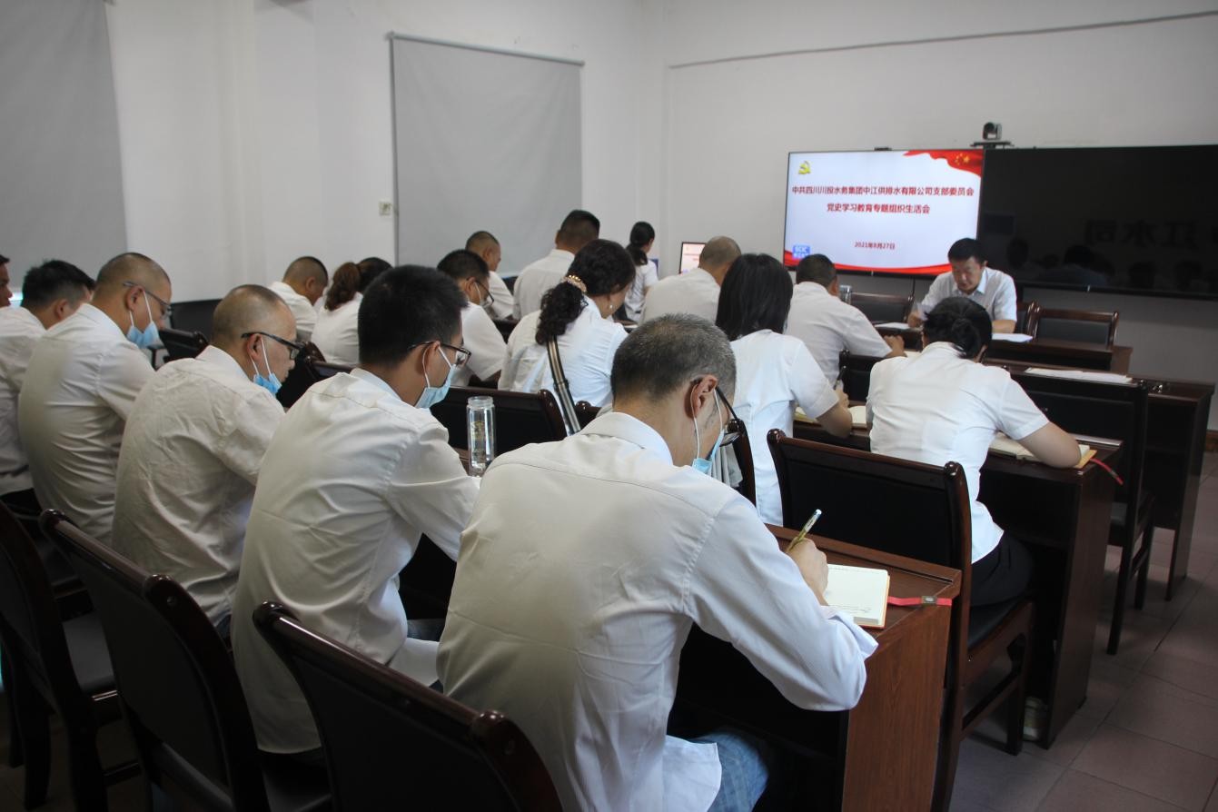 按照川投集團(tuán)黨委、川投水務(wù)集團(tuán)黨委關(guān)于黨史學(xué)習(xí)教育總體安排部署,進(jìn)一步推動(dòng)黨史學(xué)習(xí)教育走深走實(shí),8月27日下午,中江水司黨支部組織召開黨史學(xué)習(xí)教育專題組織生活會(huì),會(huì)議由黨支部書記朱禹同志主持。支部19名黨員參加了會(huì)議。