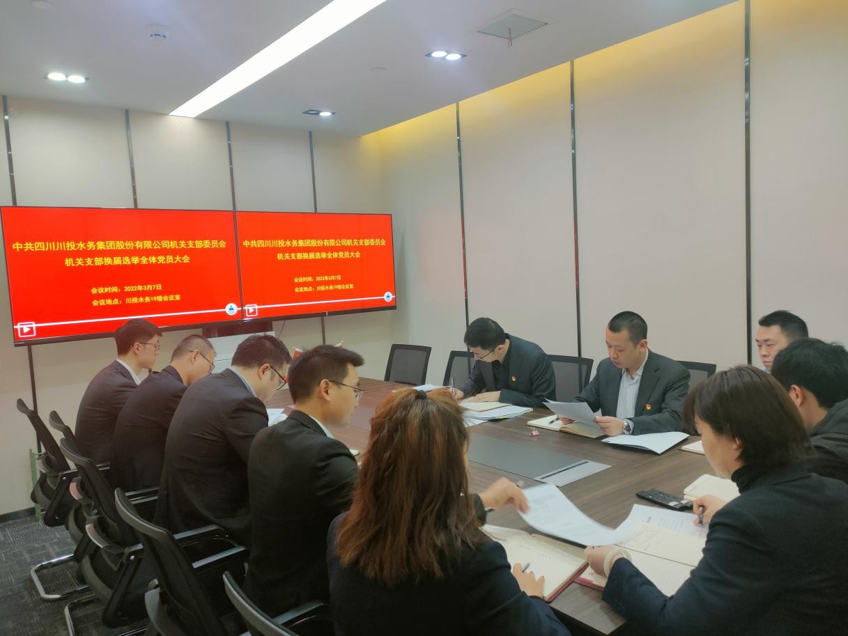 2022年3月7日,川投水務(wù)集團(tuán)機(jī)關(guān)黨支部組織召開(kāi)全體黨員大會(huì)進(jìn)行換屆選舉。會(huì)議由李至彬同志主持,機(jī)關(guān)黨支部全體12名黨員參加會(huì)議。