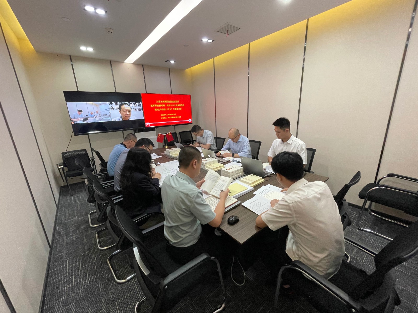 川投水務集團本部中層以上黨員干部參加中心組(擴大)專題學習會。