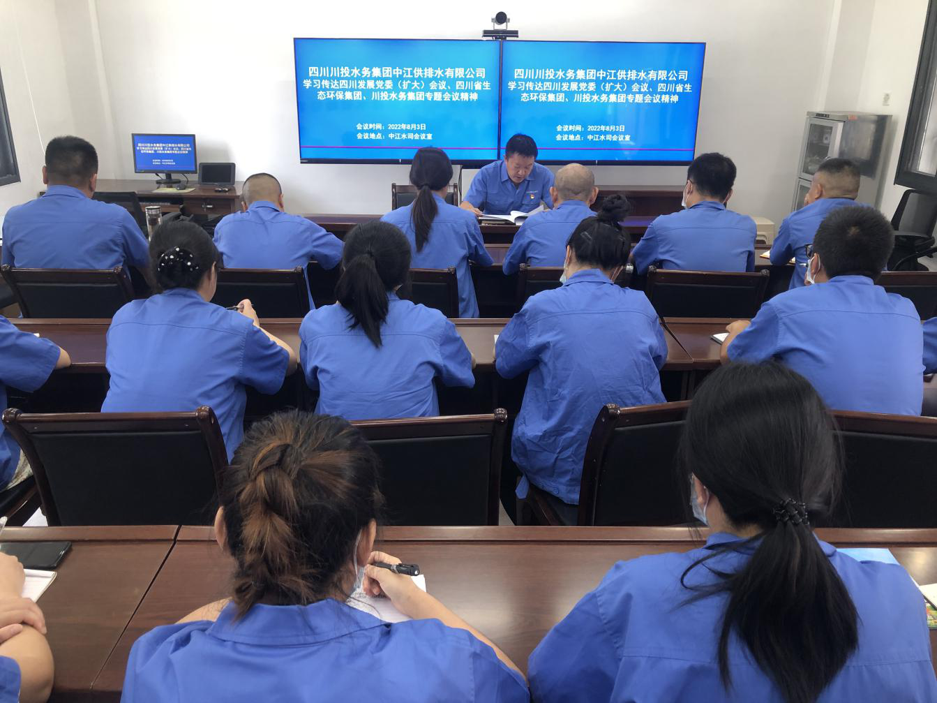 8月3日下午,中江水司召開專題會議,學習傳達上級黨委重要會議、講話精神,安排部署貫徹落實工作。會議由黨支部書記、董事長、總經理朱禹主持,公司班組以上人員、黨員和員工代表共計二十余人參加。
