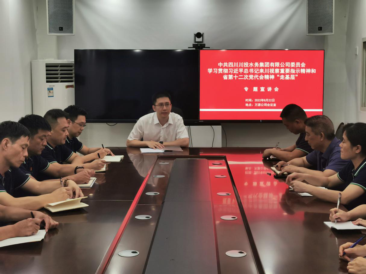 根據(jù)川投水務(wù)集團(tuán)黨委《關(guān)于認(rèn)真做好學(xué)習(xí)貫徹習(xí)近平總書(shū)記來(lái)川視察重要指示精神和省第十二次黨代會(huì)精神“走基層”專(zhuān)題宣講的通知》統(tǒng)一安排部署,8月23日,川投水務(wù)集團(tuán)黨委委員、副總經(jīng)理嚴(yán)斯亮來(lái)到萬(wàn)源公司開(kāi)展專(zhuān)題宣講活動(dòng)。