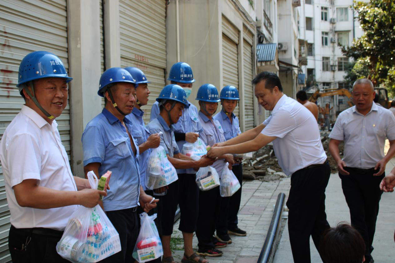 為切實(shí)做好職工夏季戶外防暑降溫工作,關(guān)愛(ài)一線職工的健康安全,8月11日,川投水務(wù)集團(tuán)黨委委員、副總經(jīng)理劉松果帶隊(duì)到濱江小區(qū)施工現(xiàn)場(chǎng),開(kāi)展2022年“夏送清涼”慰問(wèn)活動(dòng),為高溫下在戶外工作的一線員工送去清涼與關(guān)愛(ài)。