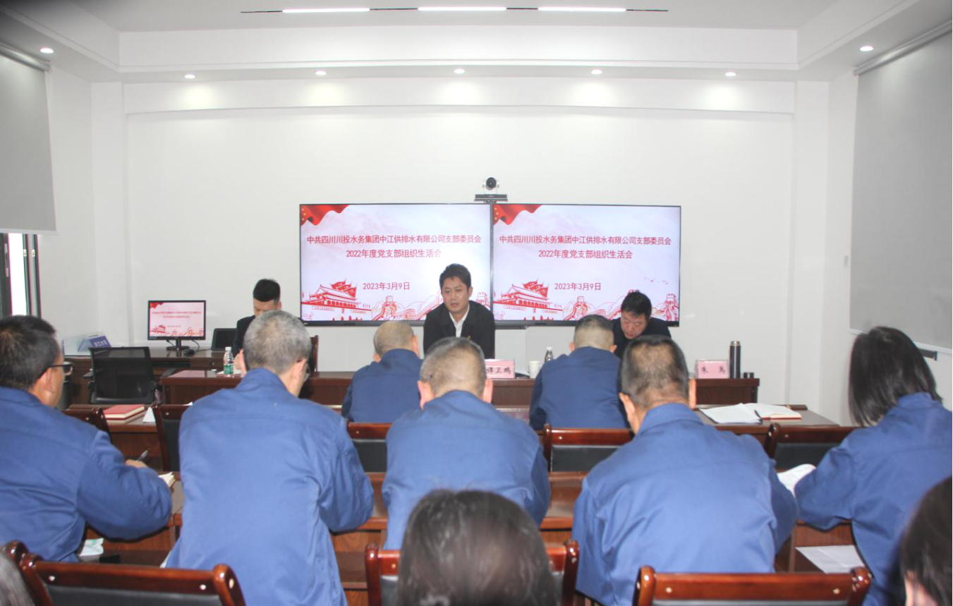 2023年3月9日,中江水司黨支部組織召開2022年度組織生活會暨民主評議黨員大會,會議由黨支部書記朱禹主持,支部16名黨員同志參加會議。川投水務集團副總經理譚衛(wèi)鵬率黨群紀檢部工作人員進行了現場督導。