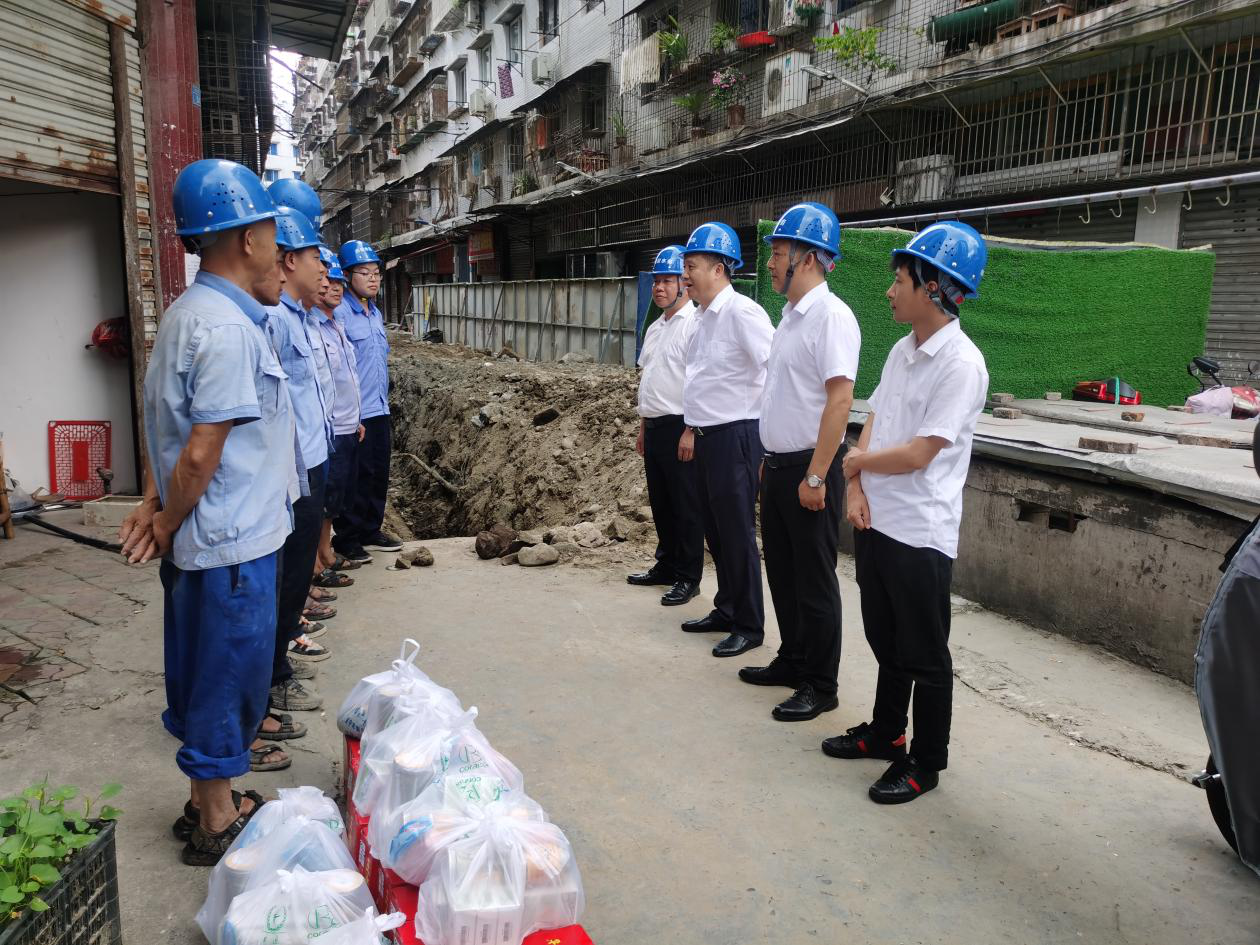 今年入夏以來,射洪市氣溫居高不下,一線工作者備受“烤”驗。為了保障員工身體健康,確保安全生產(chǎn),8月14日下午,川投水務(wù)集團公司黨委委員、副總經(jīng)理劉松果率隊前往射洪水司紅星路管網(wǎng)改造施工現(xiàn)場對作業(yè)員工進行夏日防暑降溫送清涼慰問。