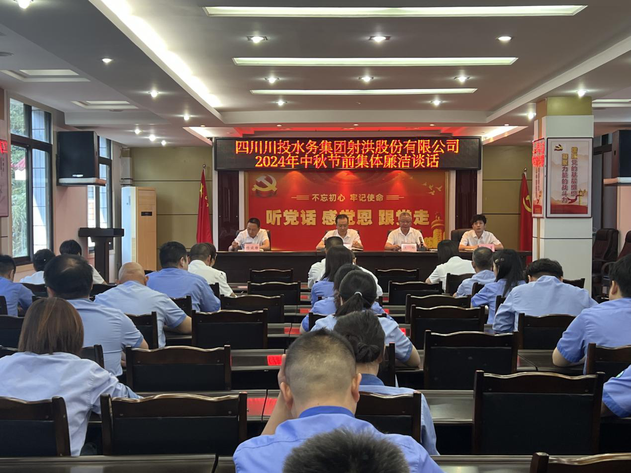為深入學(xué)習(xí)貫徹黨的二十大及二十屆中央紀(jì)委三次全會(huì)會(huì)議精神,持之以恒落實(shí)中央八項(xiàng)規(guī)定精神,9月13日,川投水務(wù)射洪公司召開中秋節(jié)前集體廉潔談話會(huì),公司全體黨員、重要崗位人員參加了會(huì)議。
