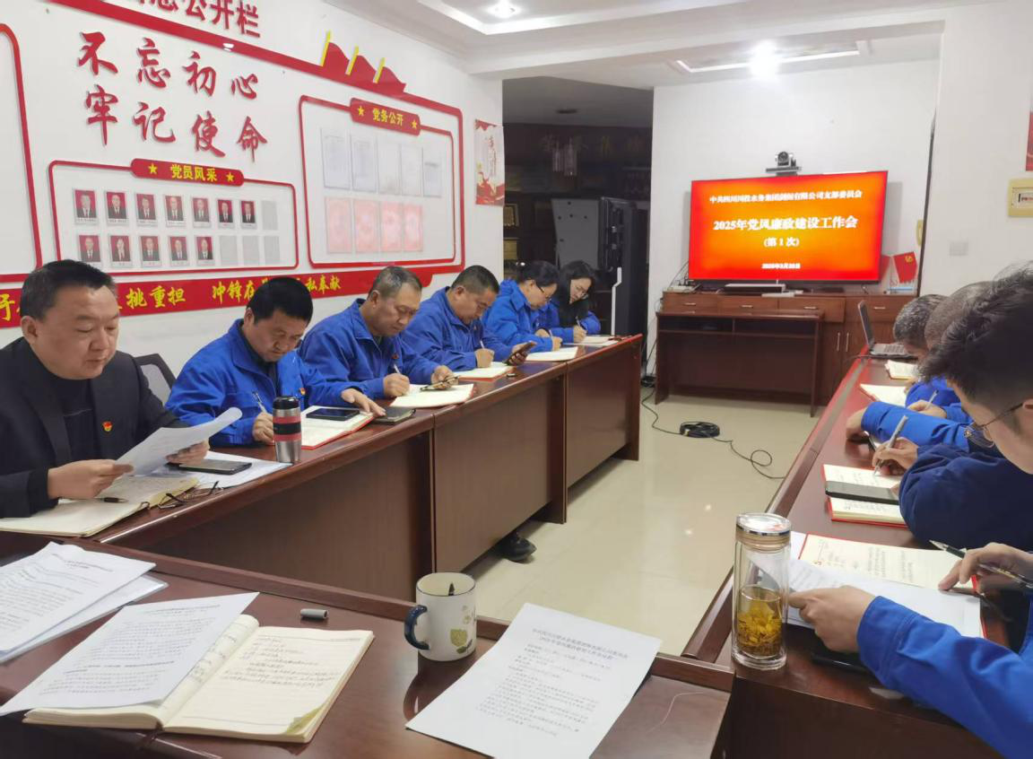 2025年3月28日,四川川投水務(wù)集團(tuán)劍閣有限公司在黨員活動室召開了2025年度黨風(fēng)廉政建設(shè)工作會。全體黨員干部職工參加會議。會上,參會人員共同觀看了警示教育片,各部門負(fù)責(zé)人簽訂了《2025年度黨風(fēng)廉政建設(shè)責(zé)任書》《廉潔從業(yè)承諾書》《工作作風(fēng)紀(jì)律承諾書》。
