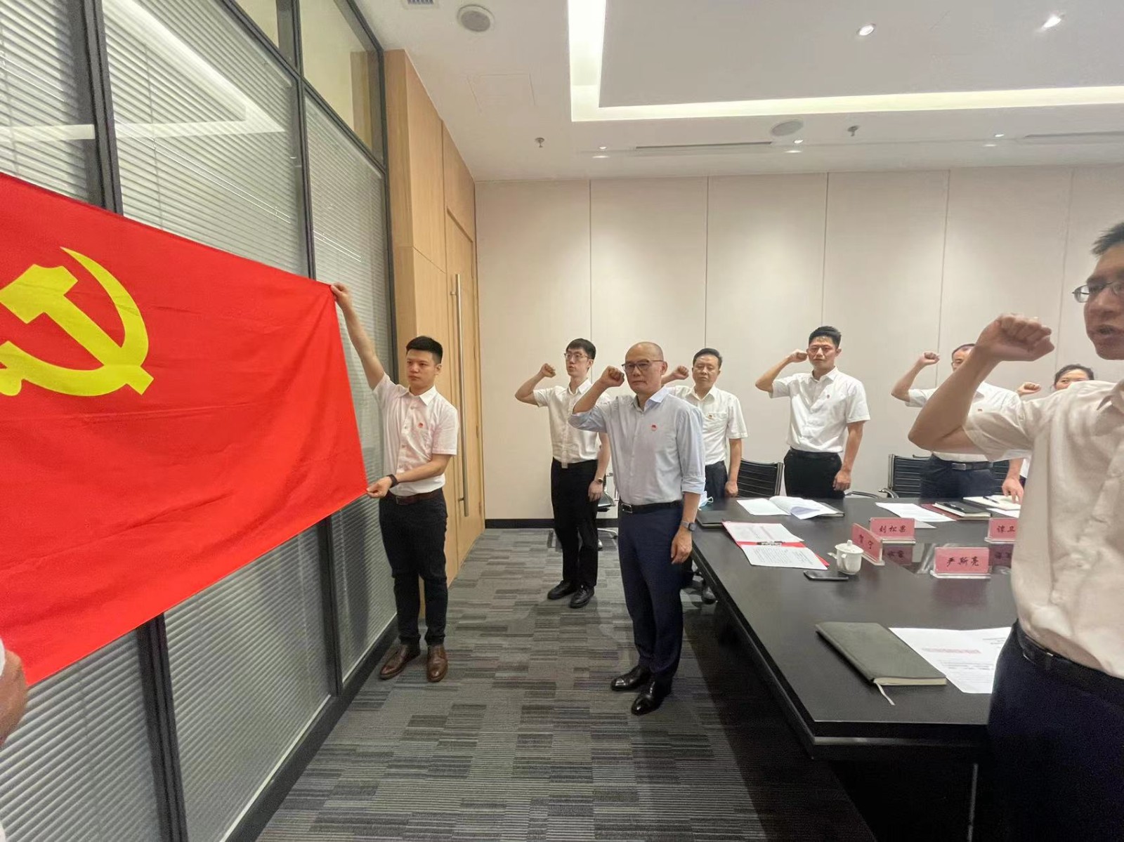 大會在莊嚴(yán)的國歌聲中開幕,黨委書記賀寧同志帶領(lǐng)全體預(yù)備黨員同志們,面向黨旗莊嚴(yán)宣誓,入黨誓詞句句鏗鏘、聲聲振耳、激蕩人心,我們將“不忘初心,牢記使命”為黨的事業(yè)接續(xù)奮斗鑄就更加輝煌的明天!同時,正式黨員同志們也再次重溫了入黨誓詞。