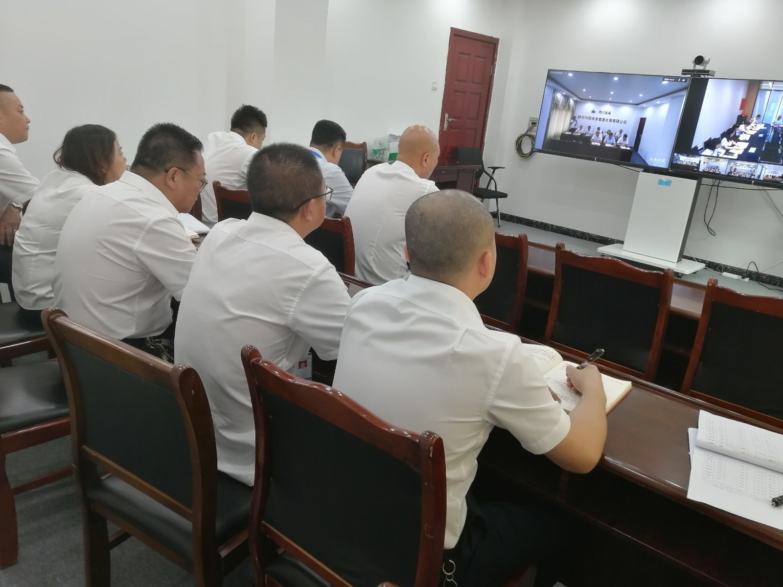 大會在熱烈的掌聲中圓滿閉幕,川投水務(wù)集團(tuán)下屬各級黨組織以視頻會議形式參加會議。