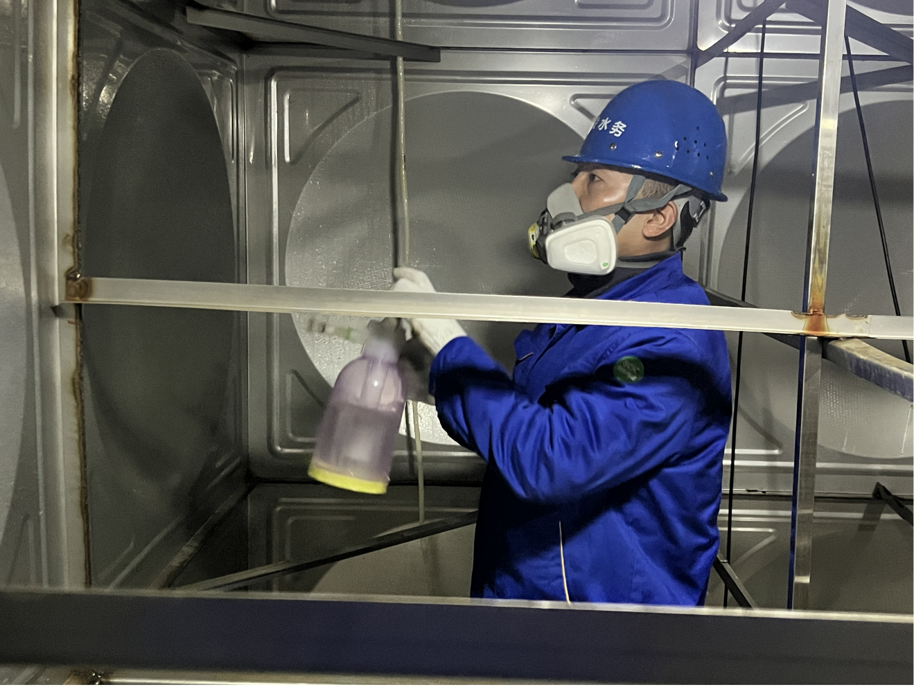 近日,為確保春節(jié)期間群眾居民最后一公里用水安全,公司青年突擊隊組織5名青年員工,對全城二次供水設(shè)備逐一進行檢查維護,清洗水箱80處。這支青年突擊隊伍承擔(dān)著射洪城區(qū)高樓層供水服務(wù)、水質(zhì)檢測、熱線處理、二次供水設(shè)備運行維護等工作。目前已服務(wù)于射洪城區(qū)二次供水用戶4.5萬余戶,2023年累計處理服務(wù)熱線296條,供水保障率、水質(zhì)合格率、用戶滿意率均達100%。