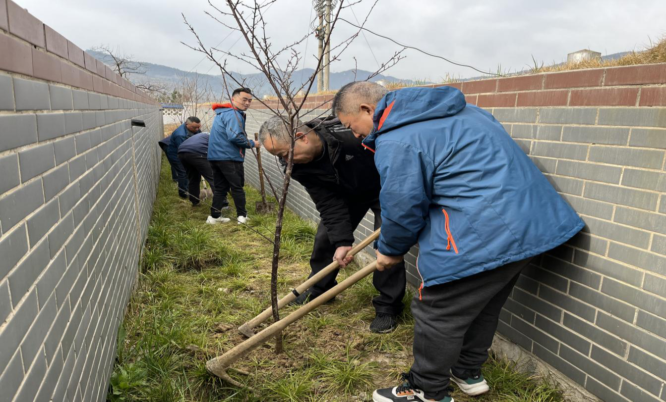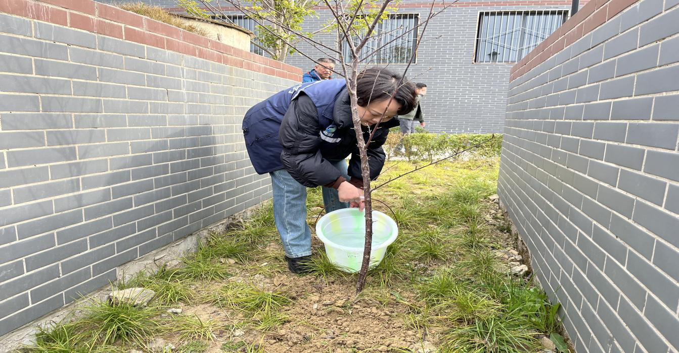 活動當(dāng)天,陽光明媚,春風(fēng)拂面,參加活動人員熱情高漲,干勁十足,大家密切配合,挖坑、鏟土、扶苗、培土、澆水,齊心協(xié)力讓一棵棵新栽種的樹苗在和煦的春風(fēng)中煥發(fā)出勃勃生機(jī),為馱山水廠增添了一抹新綠。