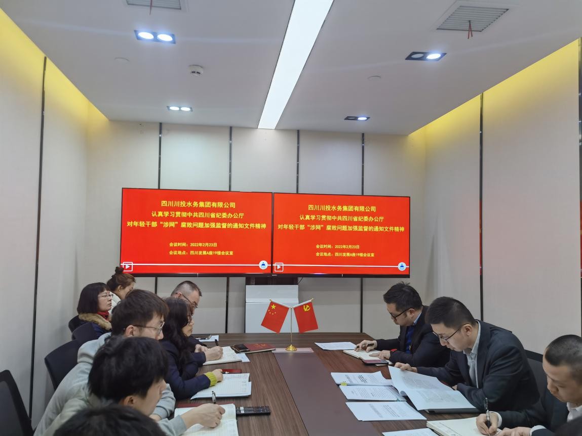 2022年2月23日,川投水務(wù)集團(tuán)組織召開專題宣貫會議,專題傳達(dá)學(xué)習(xí)省紀(jì)委辦公廳《關(guān)于對年輕干部“涉網(wǎng)”腐敗問題加強(qiáng)監(jiān)督的通知》文件精神,川投水務(wù)集團(tuán)黨委委員、副總經(jīng)理嚴(yán)斯亮主持會議,并提出相關(guān)學(xué)習(xí)貫徹要求。