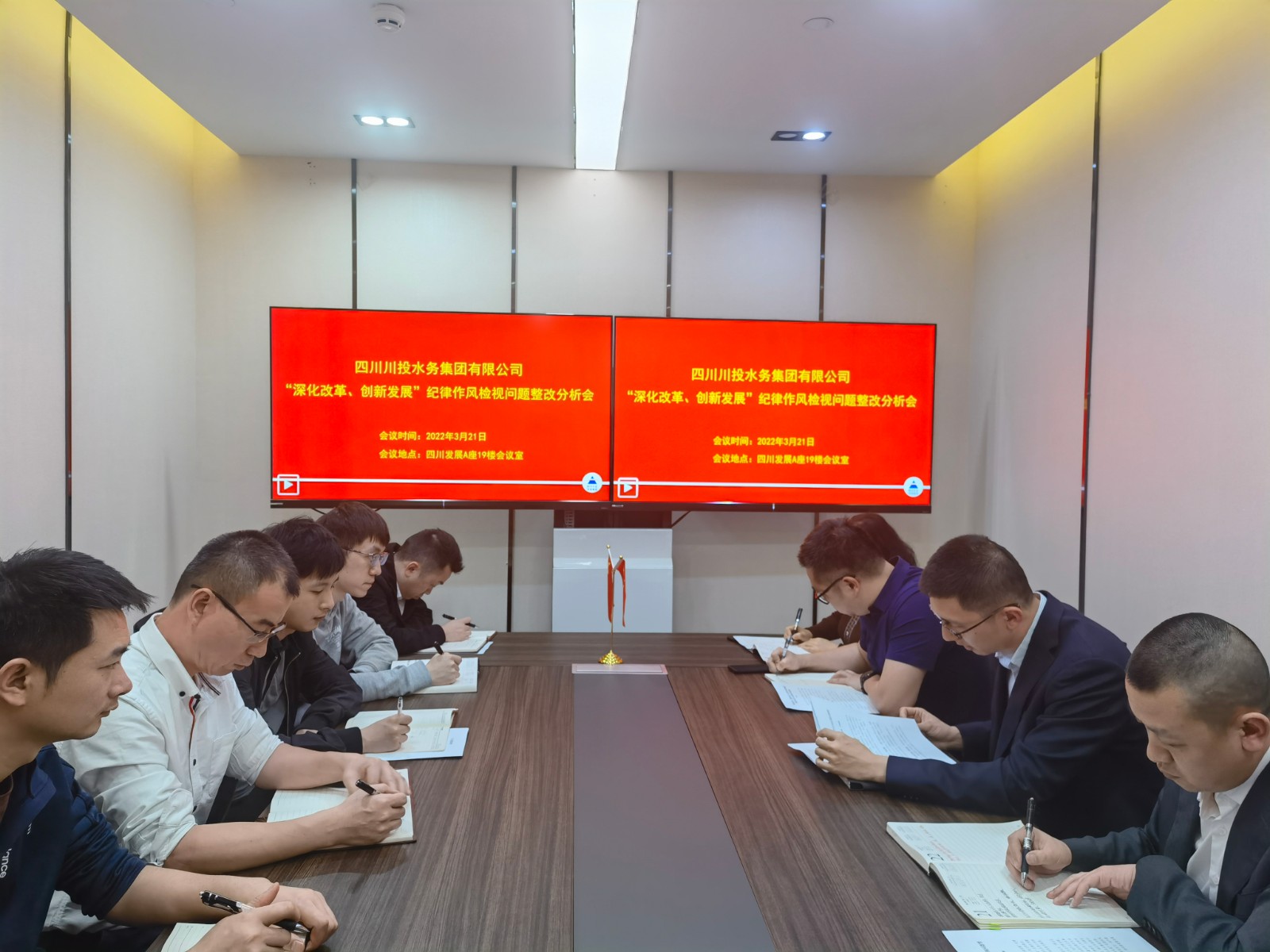 2022年3月21日,為貫徹落實四川發(fā)展黨委“深化改革、創(chuàng)新發(fā)展”紀(jì)律作風(fēng)整頓相關(guān)工作要求,開展好第二階段“緊盯突出問題,全面集中整改”工作任務(wù),進(jìn)一步加強(qiáng)督促與指導(dǎo)工作同頻共振,切實將整改措施落到實處。川投水務(wù)集團(tuán)本部認(rèn)真組織召開了“深化改革、創(chuàng)新發(fā)展”紀(jì)律作風(fēng)問題整改情況分析會,會議由川投水務(wù)集團(tuán)黨委委員、副總經(jīng)理嚴(yán)斯亮主持。