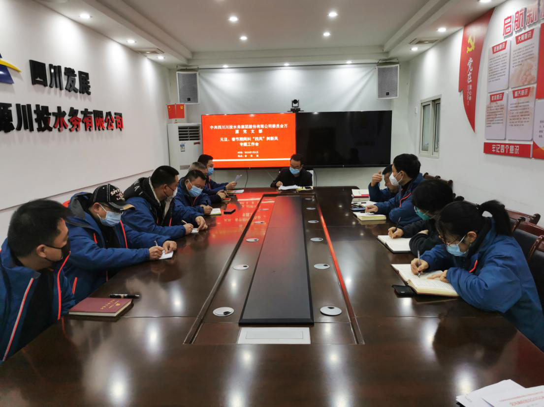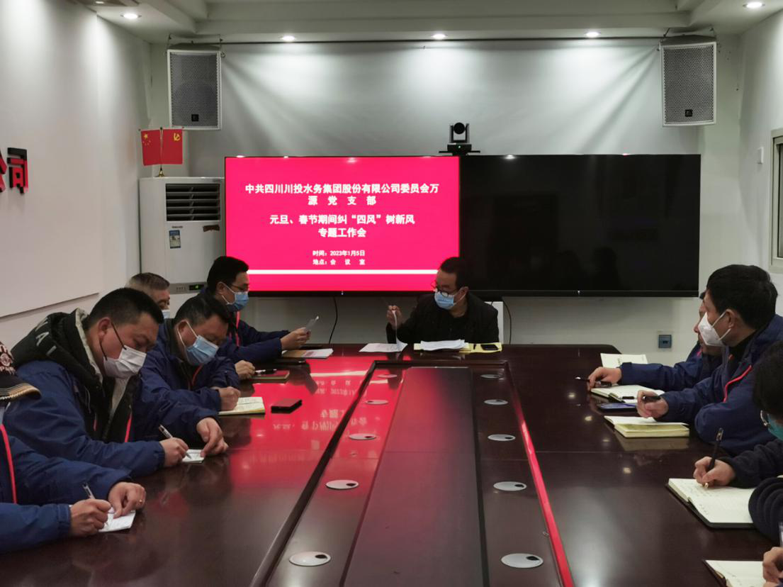 2023年春節(jié)將至,為馳而不息的做好防治節(jié)日“四風(fēng)”問題,營造“風(fēng)清氣正”的節(jié)日氛圍,按照川投水務(wù)集團黨委、紀(jì)委的工作要求,萬源公司黨支部于1月5日上午組織召開了元旦、春節(jié)期間糾“四風(fēng)”樹新風(fēng)專題工作會。公司領(lǐng)導(dǎo)班子成員、部門副職及以上管理人員參加會議。