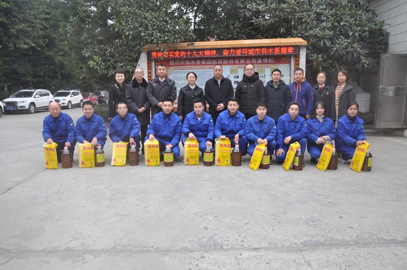 2020年1月14日,川投水務(wù)集團紀委書記但必良率領(lǐng)川投水務(wù)集團總經(jīng)理助理楊志剛、綜合部副經(jīng)理喻迦、安全環(huán)保部肖瀟一行四人到射洪水司進行2019年度綜合考評工作和節(jié)前慰問。