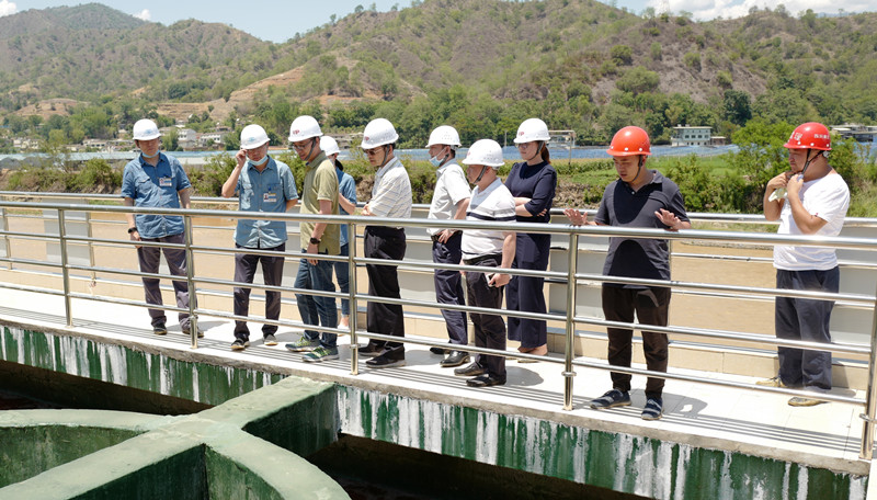 2020年6月10日下午14時(shí)許,米易氣溫已高達(dá)37℃,川投集團(tuán)總經(jīng)理助理、經(jīng)營(yíng)管理部部長(zhǎng)李勝章、副部長(zhǎng)孫志祥一行蒞臨川投船重一枝山工業(yè)集中式污水處理項(xiàng)目工地,對(duì)項(xiàng)目建設(shè)進(jìn)度、工程管理及安全生產(chǎn)進(jìn)行檢查并指導(dǎo)工作。