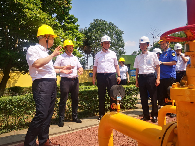 中午1時許,黃董事長一行不顧室外超過34度的高溫,頂著炎炎烈日先后前往宏源公司氣井、儲配站、CNG加油加氣站、液化氣充裝站等地視察調(diào)研、檢查安全工作,并前往客戶服務中心了解了宏源公司打造一站式服務、信息化建設等情況。在井場和儲配站,黃董事長一行了解了場站設備設施、工藝流程和安全運行等基本情況,并重點察看了安全生產(chǎn)清單制資料臺賬和燃氣SCADA系統(tǒng);在CNG加油加氣站和液化氣充裝站,黃董事長一行察看了加油加氣流程、儲氣罐、壓縮機房和液化氣儲罐區(qū)安全運行情況,了解當前成品油和壓縮氣的價格、行情、油和氣各自優(yōu)勢等經(jīng)營細節(jié)。黃董事長對宏源氣司“安全專家會診”等措施給予了充分認可,要求宏源公司繼續(xù)把安全供氣放在首位,以優(yōu)質高效服務做好民生保障,針對當前夏季高溫暴雨天氣,要認真吸取溫嶺槽罐車爆炸事故教訓,加強重要區(qū)域、關鍵環(huán)節(jié)的安全管理,加強隱患排查治理,要堅持“以人為本,安全第一”的原則,提前做好搶險撤避應急預案,提高應急處置能力,持續(xù)保持安全平穩(wěn)發(fā)展態(tài)勢。