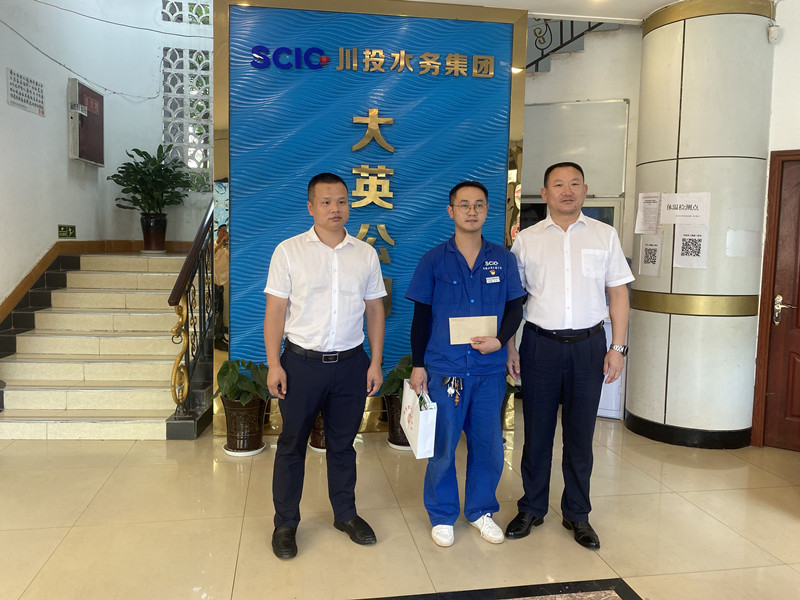 8月10日下午,大英縣委副書記、縣長(zhǎng)胡銘超來(lái)到川投水務(wù)大英水司,對(duì)“開(kāi)關(guān)俠”魏巍勇于奉獻(xiàn)、保障供水、弘揚(yáng)正能量的行為給予充分肯定,并送上慰問(wèn)和祝福。