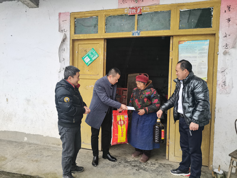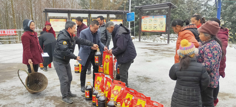 12月30日上午9點(diǎn),李至彬副部長來到海拔1500多米的和平村村委會(huì),冒雪向十多名困難群眾送上米、油和慰問金。李副部長向鄉(xiāng)親們表示,今天自己受川投水務(wù)黨委之托來看望大家,希望大家能夠在黨和國家的精準(zhǔn)扶貧政策下,努力發(fā)展生產(chǎn),早日致富奔康,并祝愿鄉(xiāng)親們在新的一年里,身體健康,日子越過越紅火。困難群眾劉燦珍由于腿腳殘疾,行走不便,李副部長踏著雪上門慰問,詳細(xì)詢問了家庭生活情況,并送上了米、油及慰問金。