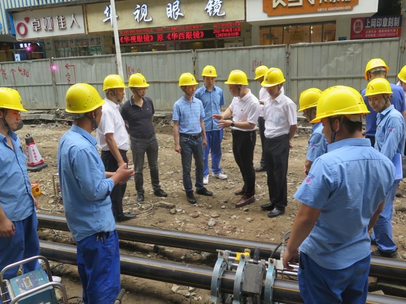 在解放中街老舊管網(wǎng)整改現(xiàn)場(chǎng),張昊副總經(jīng)理查看了PE管道焊接進(jìn)度、焊接質(zhì)量,翻看了管網(wǎng)整改方案與現(xiàn)場(chǎng)質(zhì)量管控記錄,向現(xiàn)場(chǎng)施工人員了解了施工進(jìn)度和管網(wǎng)改造情況。