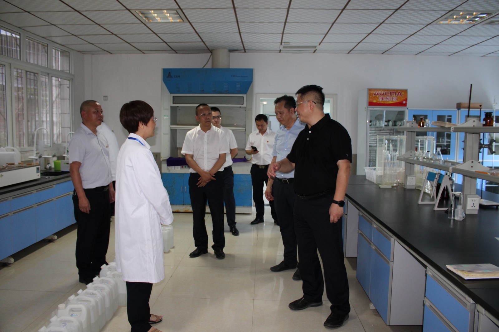 王亮總經(jīng)理一行首先到河東片區(qū),了解了河東發(fā)展規(guī)劃和欣澤引灌有限公司運營模式及情況。隨后到射洪水司全新改造升級的客戶服務中心、生產(chǎn)廠區(qū)、環(huán)檢公司等進行了現(xiàn)場調(diào)研,查看了制水工藝流程,詢問水質(zhì)檢測保障情況,聽取了劉松果就疫情防控、汛期制水、水質(zhì)保障、安全檢查及防災減災工作落實情況的匯報。王亮總經(jīng)理在肯定射洪水司工作的同時提出要求:射洪水司承擔30萬的居民生產(chǎn)生活用水,面對日益突出的供需矛盾,要想盡辦法,通過科學論證,統(tǒng)籌規(guī)劃,確保生產(chǎn)經(jīng)營穩(wěn)定可持續(xù),為射洪市的經(jīng)濟社會發(fā)展提供優(yōu)質(zhì)的供水保障。