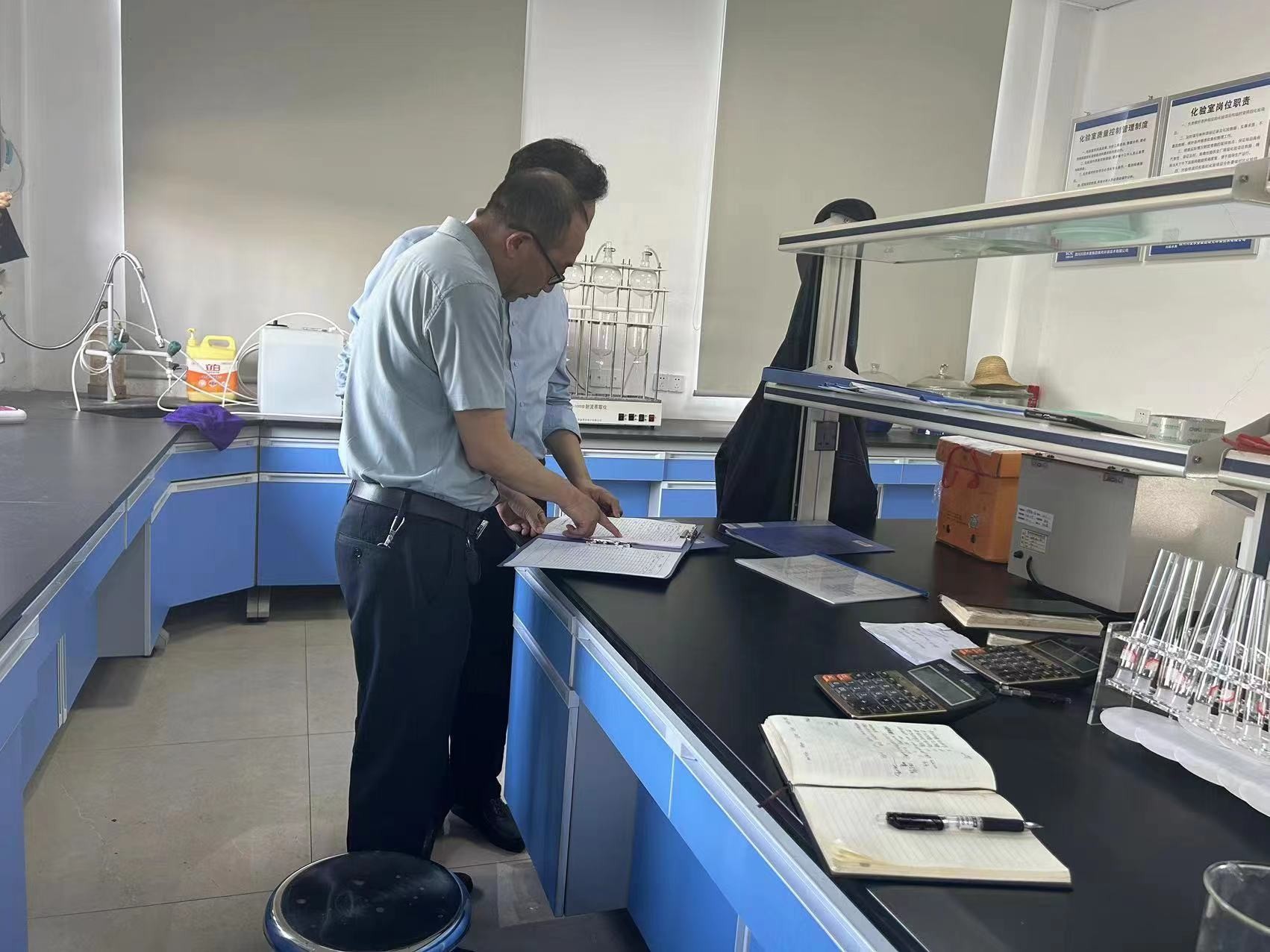 督導(dǎo)組首先到綜合部向值班人員詢問了節(jié)假日期間公司值班值守情況,在中控時(shí)查看了生產(chǎn)運(yùn)行情況,隨后查看了化驗(yàn)室?;奉I(lǐng)用及使用記錄,并詢問了每日檢測(cè)項(xiàng)目及檢測(cè)結(jié)果,最后實(shí)地查看了膜池化學(xué)清洗情況、剩余污泥脫水情況、生產(chǎn)設(shè)施設(shè)備運(yùn)行等情況。