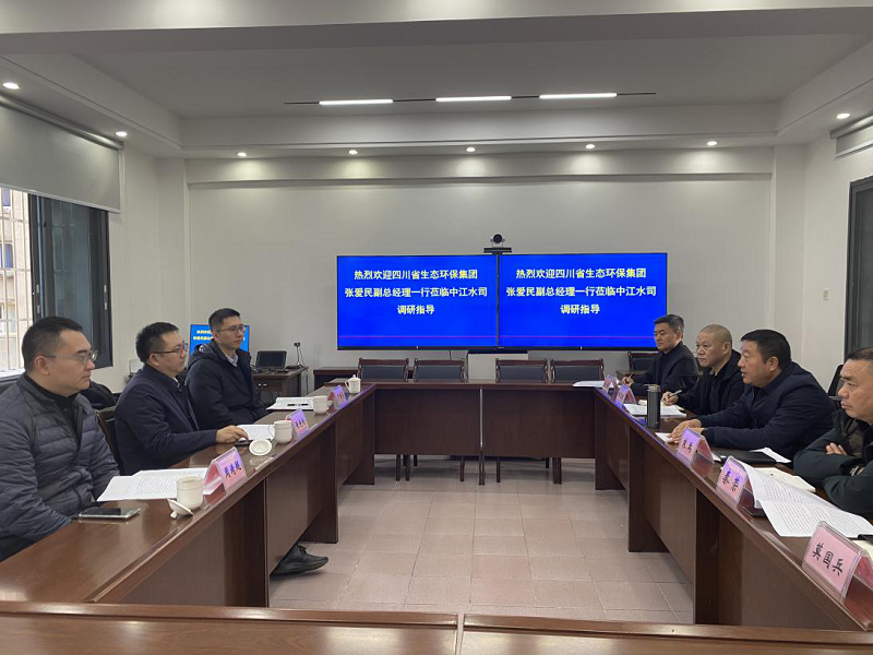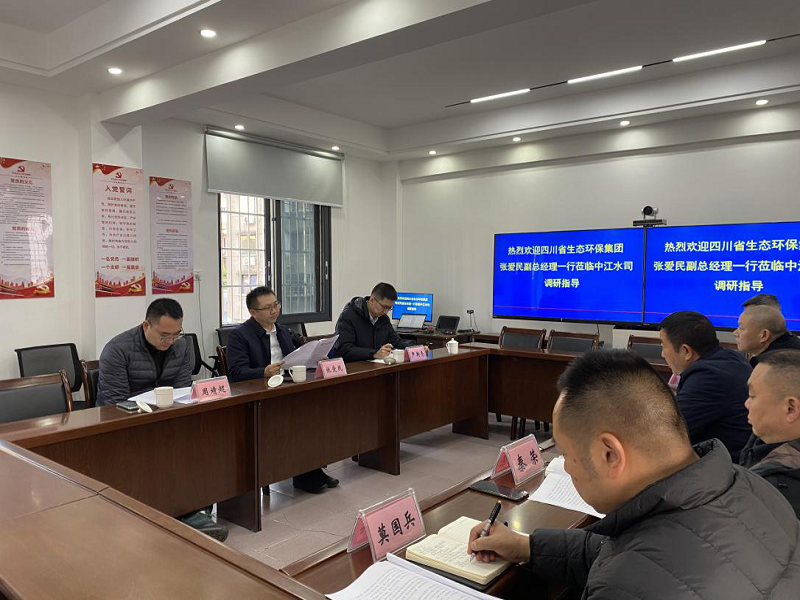 2023年11月22日,四川省生態(tài)環(huán)保集團(tuán)副總經(jīng)理張愛民、戰(zhàn)略發(fā)展部副部長周靖超,川投水務(wù)黨委委員、副總經(jīng)理嚴(yán)斯亮一行赴中江公司開展調(diào)研指導(dǎo)工作。中江水司黨支部書記、董事長、總經(jīng)理朱禹等班子成員參加調(diào)研會。