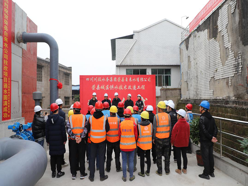 12月29日上午,榮縣城區(qū)供水技術(shù)改造工程項目通水儀式在榮縣水司生產(chǎn)廠區(qū)內(nèi)成功舉行。川投水務(wù)集團黨委委員、副總經(jīng)理嚴斯亮,戰(zhàn)略經(jīng)營管理部負責(zé)人及技術(shù)人員參加技改工程項目通水儀式。榮縣水司支部書記、執(zhí)行董事、總經(jīng)理龔慶以及公司經(jīng)營班子成員、部分中層管理干部、施工單位、監(jiān)理單位、甲方代表共計20余人參加。