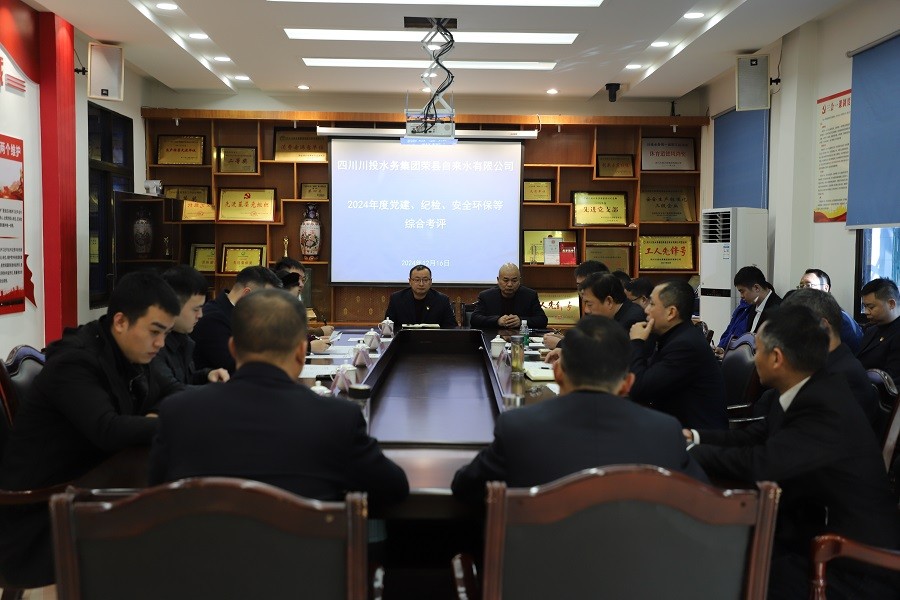 12月16日上午,川投水務集團黨委委員、副總經(jīng)理唐韜率川投水務第二考核組對榮縣公司開展2024年度黨建、紀檢、安全環(huán)保等綜合考評工作。榮縣公司黨支部書記、執(zhí)行董事、總經(jīng)理龔慶及副總經(jīng)理趙勇、中層管理干部、職工代表共計24人參加會議。