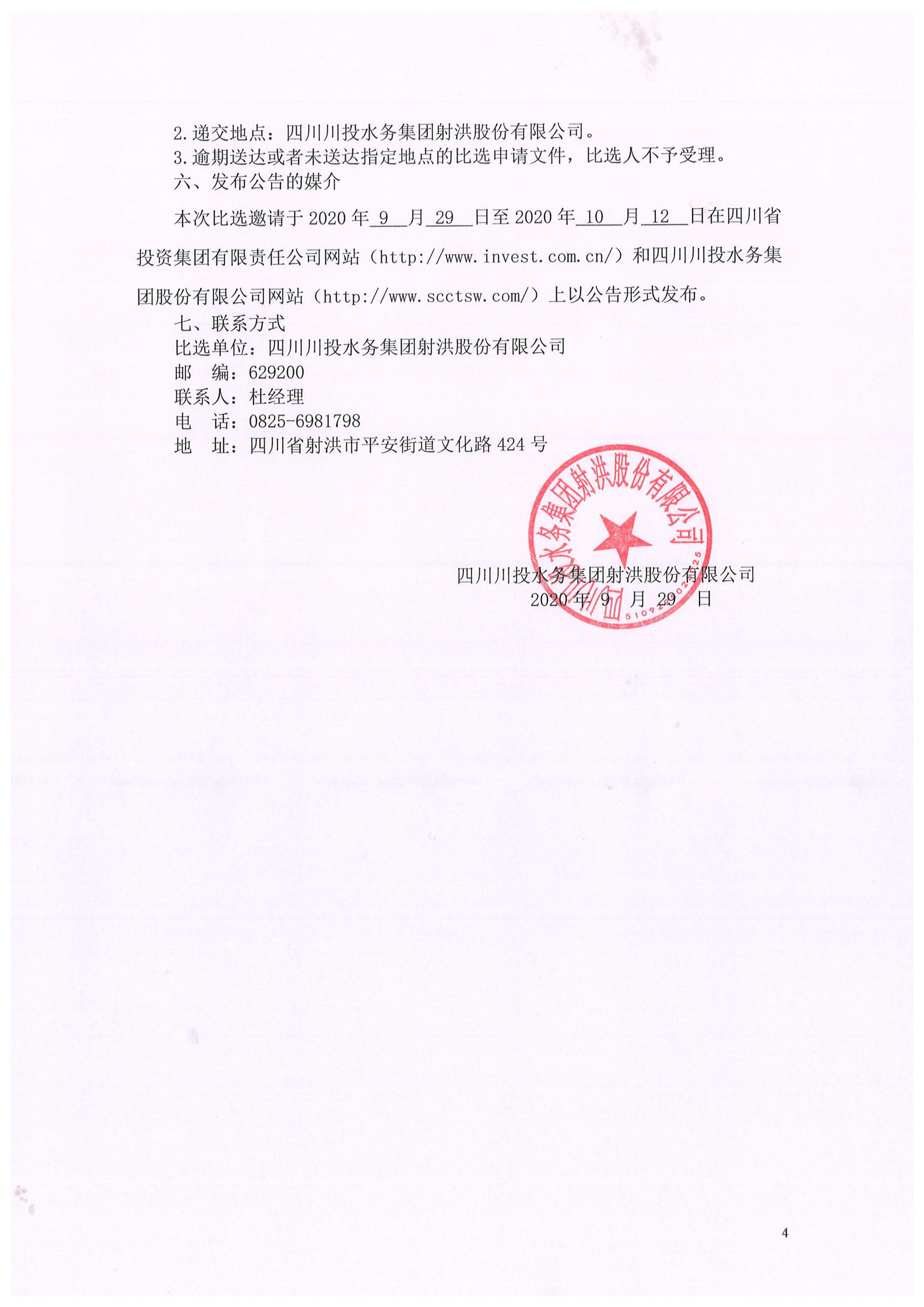 上一條:四川川投水務(wù)集團(tuán)股份有限公司射洪新建自來(lái)水廠可行性研究報(bào)告編制項(xiàng)目比選公告