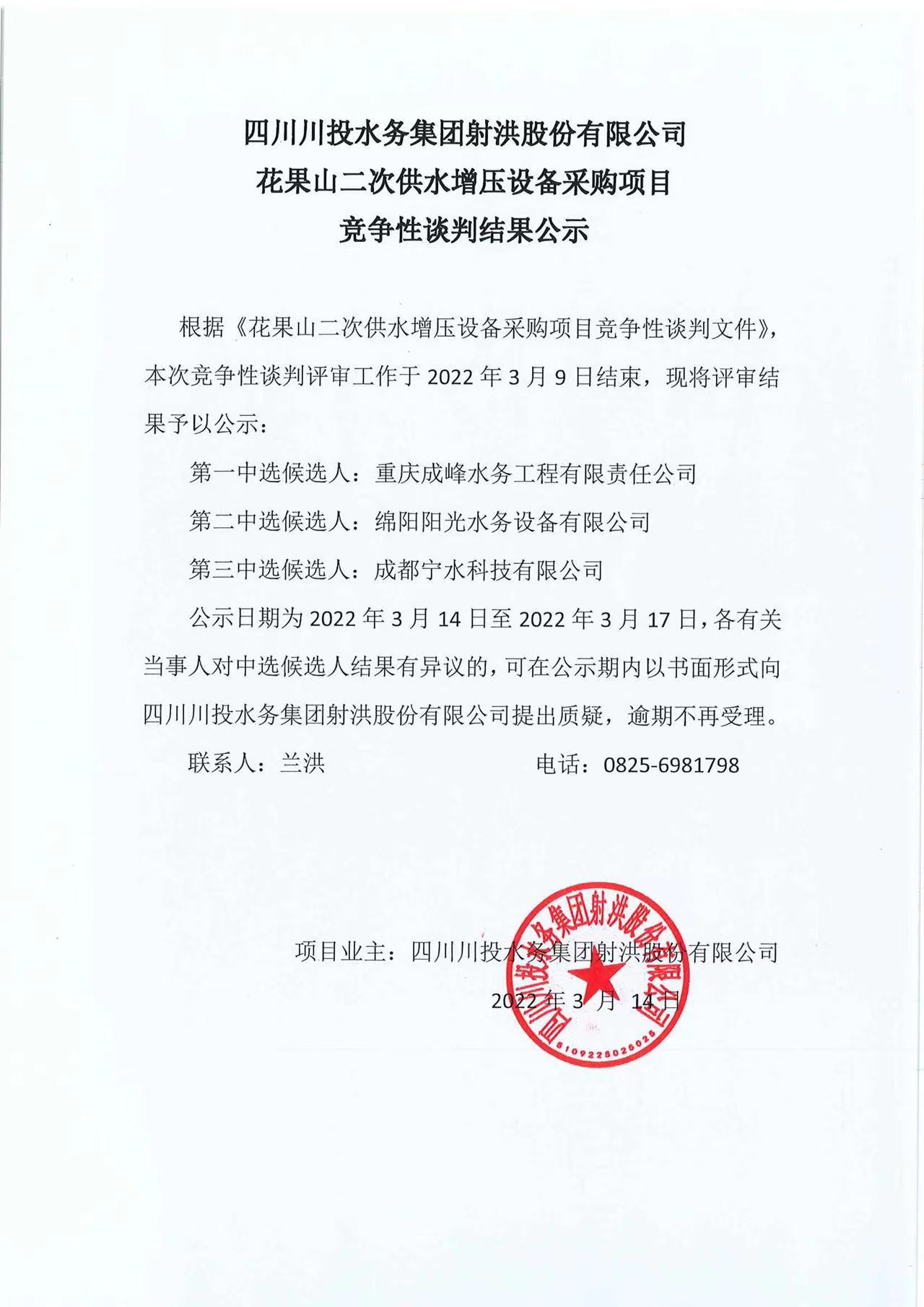 上一條:四川川投水務(wù)集團(tuán)股份有限公司射洪市新建自來水廠可行性研究報告編制項目比選公告(第二次)