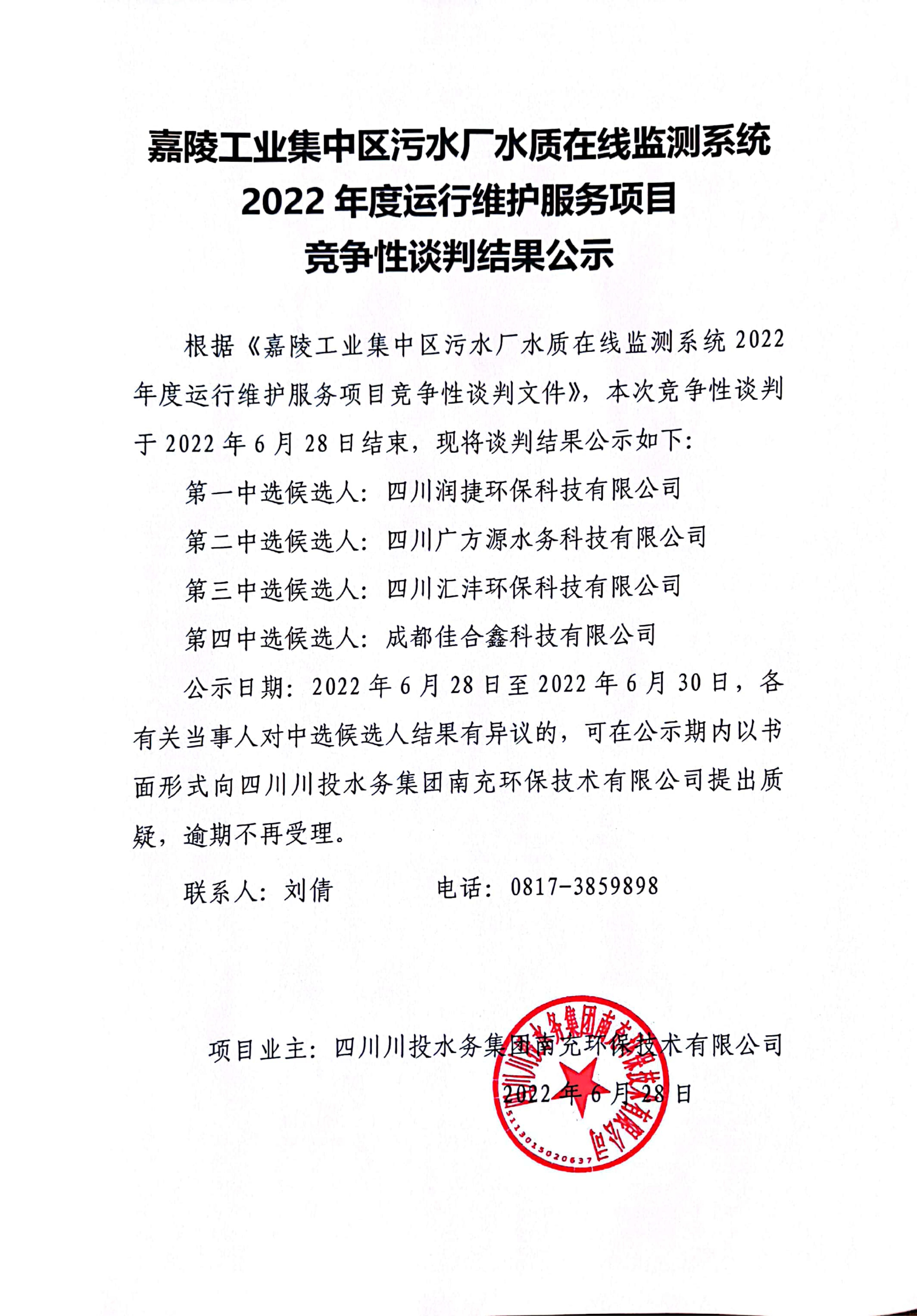上一條:四川川投水務(wù)集團(tuán)射洪股份有限公司水廠配電系統(tǒng)升級改造工程競爭性談判結(jié)果公示